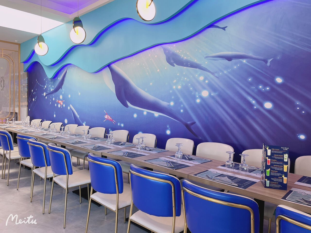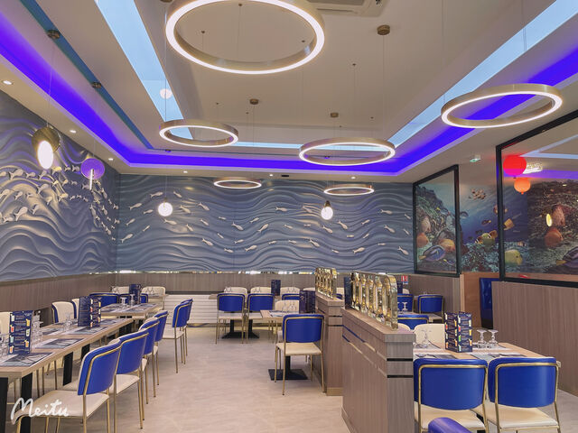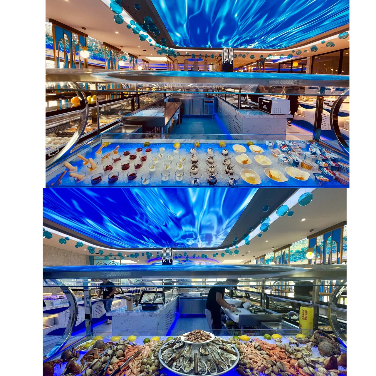Le formule buffet à volonté Large choix d’entrées, de plats chauds et de desserts. Stand de Fruits de mer, des moules, langoustines, coquilles saint -jaques, crabes crevettes et huîtres.